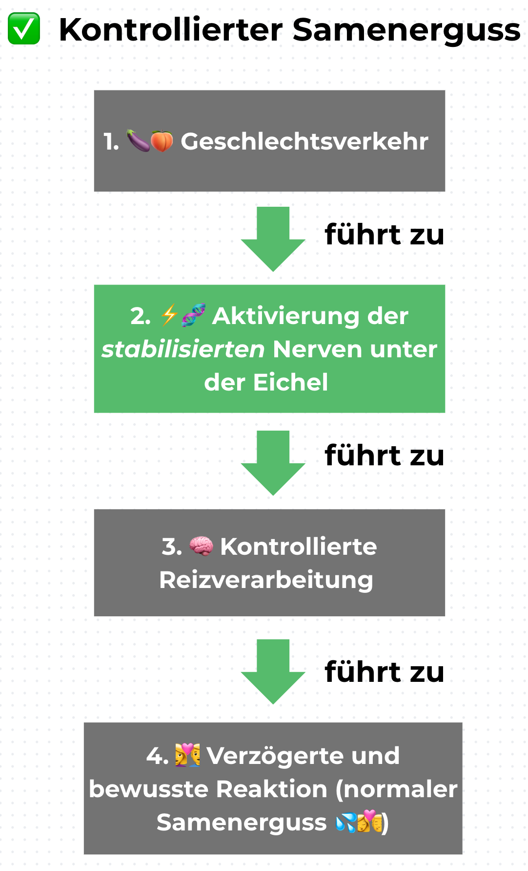 ✅ Wie Du wieder mehr Gefühl und Kontrolle bekommst – mit einem Ansatz, der auch in klinischen Studien bereits zu messbaren Verbesserungen der Ejakulationskontrolle geführt hat. Alles natürlich. Von zu Hause ganz diskret. Ohne Eingriffe oder Risiken.